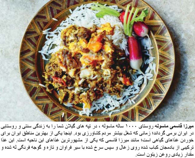 It is also one of the best places to sample Iran’s vegetarian cuisine, most notably the dish mirzeh ghasemi, a regional speciality of smoky aubergines, burnt over hot coals and then gently fried with tender young garlic, plump tomatoes and plenty of local olive oil.