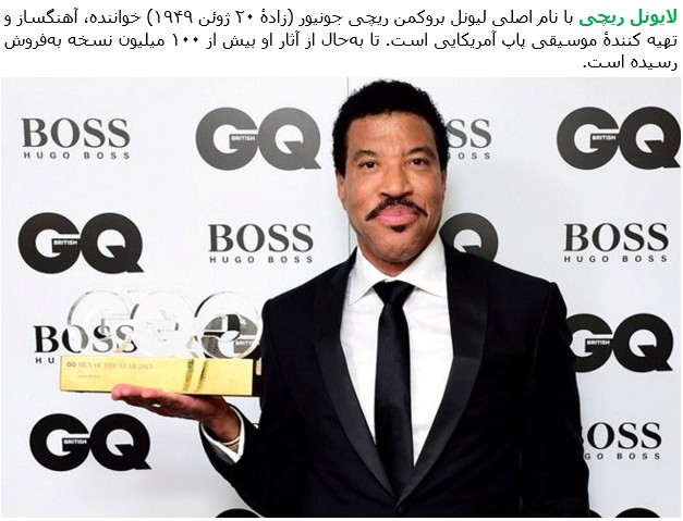 Lionel Brockman Richie, Jr. (born June 20, 1949) is an American singer, songwriter, musician, record producer and actor. Beginning in 1968, he was a member of the musical group Commodores signed to Motown Records. Richie made his solo debut in 1982 with the album Lionel Richie and the number-one hit “Truly”. He has sold more than 100 million records worldwide, making him one of the world’s best-selling artists of all time.