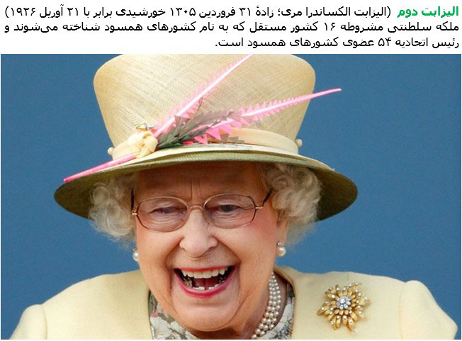 Elizabeth II (Elizabeth Alexandra Mary; born 21 April 1926) is, and has been since her accession in 1952, Queen of the United Kingdom, Canada, Australia and New Zealand, and Head of the Commonwealth. She is also Queen of 12 countries that have become independent since her accession: Jamaica, Barbados, the Bahamas, Grenada, Papua New Guinea, Solomon Islands, Tuvalu, Saint Lucia, Saint Vincent and the Grenadines, Belize, Antigua and Barbuda, and Saint Kitts and Nevis.