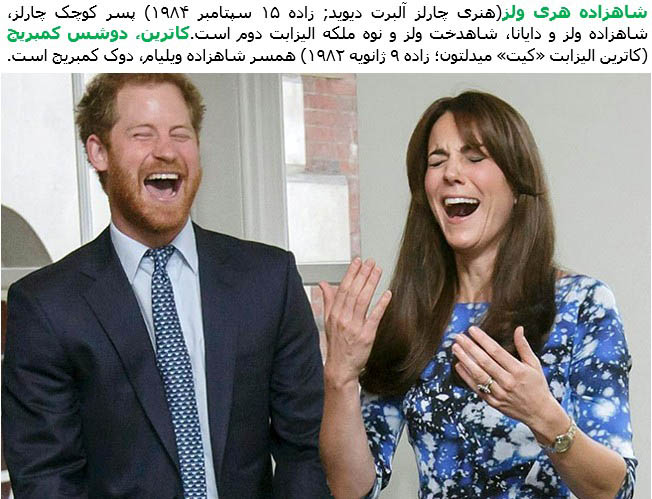 Prince Henry of Wales, (born 15 September 1984), known as Prince Harry is the younger son of Charles, Prince of Wales, and Diana, Princess of Wales. At the time of his birth, he was third in the line of succession to succeed his grandmother, Queen Elizabeth II. He is currently fifth in line after his nephew, George, and niece, Charlotte.Catherine, Duchess of Cambridge (Catherine Elizabeth “Kate”; née Middleton; born 9 January 1982), is the wife of Prince William, Duke of Cambridge. Following his father Charles, Prince of Wales, William is second in line to succeed his grandmother, Queen Elizabeth II, as monarch of the United Kingdom and 15 other Commonwealth realms.