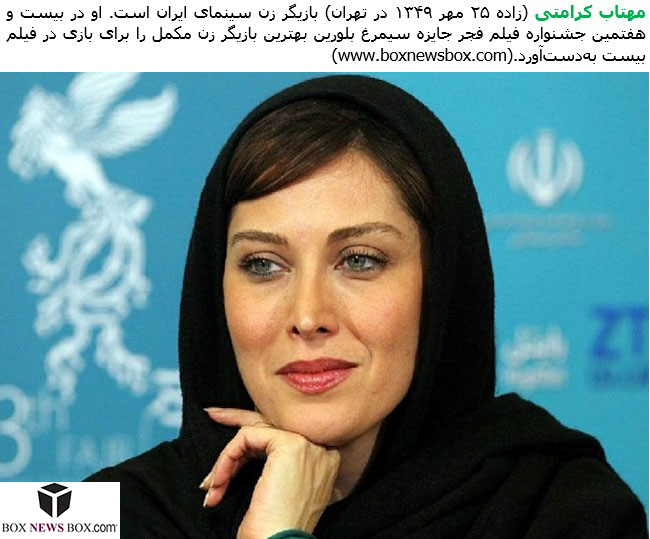 Mahtab Keramati (born October 17, 1970 in Tehran, Iran) is an Iranian actress. In 2006 she was appointed as UNICEF National Ambassador in Iran. She was taking acting courses when she was chosen for the role of Helen in “The Men of Anjelos”. She found fame with this series and went on to appear in films such as “Mummy III” and “Rain man” for which she was nominated for a Fajr International Film Festival Crystal Symorgh. She then appeared in dramas such as “Saint Mary” and “Crimson Soil” and the films “Hell, Purgatory, Heaven”, “There Are Things You Don’t Know”, “Alzheimer’s” and “The Private Life of Mr. And Mrs. M.”. She won a Crystal Symorgh for Best Actress in a Supporting Role for “20”.