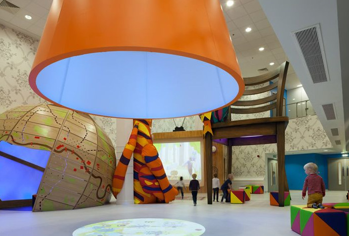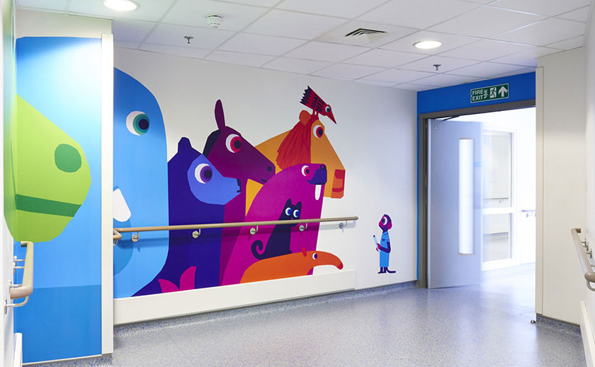 The sights, sounds and smells of a hospital can make it a terrifying place, especially for children, but it doesn’t have to be that way. Vital Arts, a British arts organization in charge of introducing art to Britain’s hospitals, had 15 artists collaborate to turn the interior of London Royal Children’s Hospital into as fun and colorful a place as a hospital can be. Despite being limited by the fact that hospital environments need to be easy to clean, the artists were still able to use vinyl, ceramics, wood and even rugs to liven up these hospitals, each approaching the wards they decorated with their own unique style.The designs are so fun and wonderful, I kind of wish that it wasn’t just a children’s hospital!
