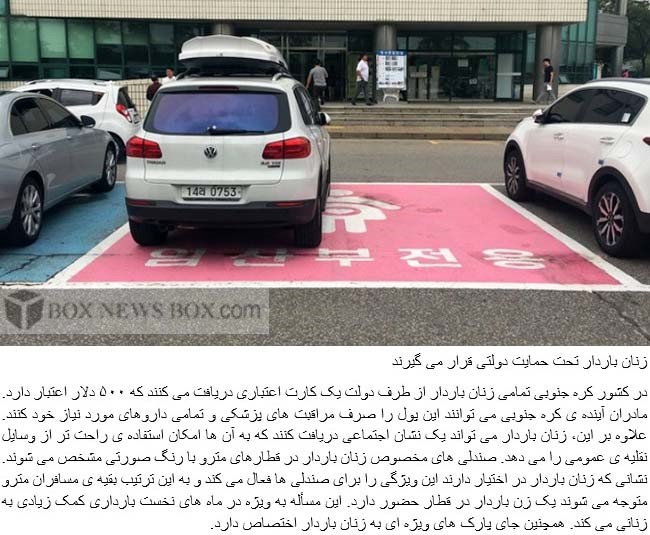 All pregnant women in South Korea receive a special credit card from the government. This card has $500 on it. A future mother can spend this money on medical treatment and all necessary medicine. Also, a woman can get a social trinket which allows for comfortable use of public transportation. The seats for pregnant women on the subway are marked with a pink color. The trinket activates this sign, so that all the passengers know that there is an expectant mother in the car. This is especially helpful for those in the early stages of pregnancy. There are also special parking places for future mothers.