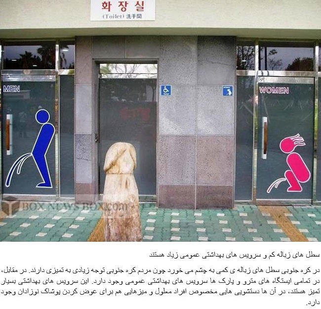 There are no trash bins there because Koreans are very tidy. There are public toilets in each subway station and in each park. The toilets are very clean with separate cabins for disabled people. Women’s toilets have special tables for changing diapers.