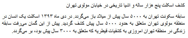 Archaeologists found the 7,000-year-old skeleton in their excavations in Molavi Street in the south of capital. According to the initial estimates, the human bones belong to 5,000 year … read more