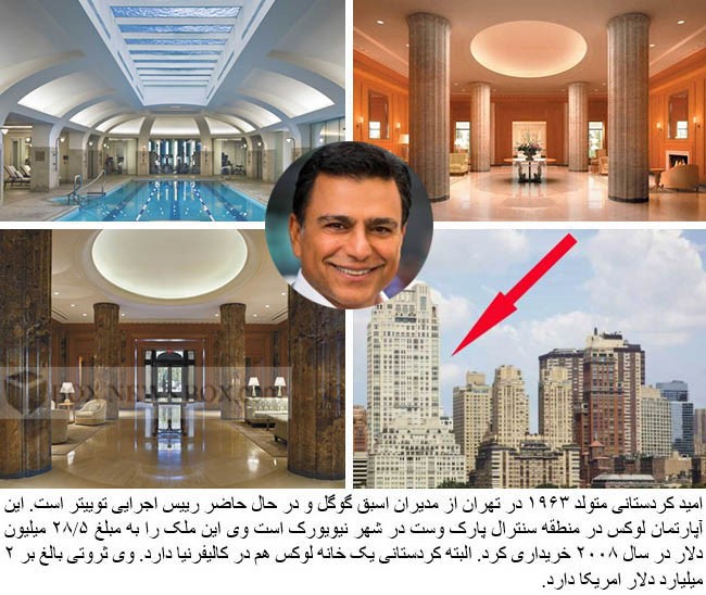 Former Google exec Omid Kordestani owns a unit on the same floor as Lloyd Blankfein and Sting. He bought his apartment in March 2008 for $29.5 million. Kordestani joined Twitter as executive chairman in October 2015.