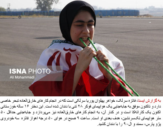 A 16-year-old girl in Ahwaz attempted to get her name registered in Guinness book of world records by pulling three sedans with her teeth.