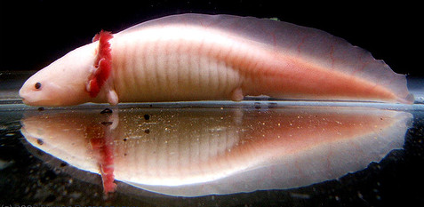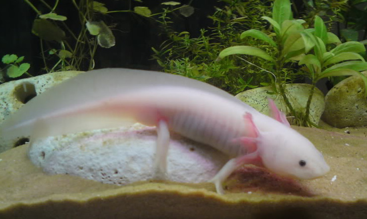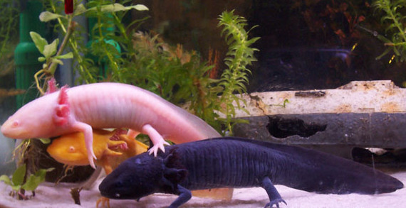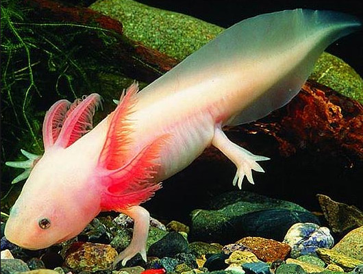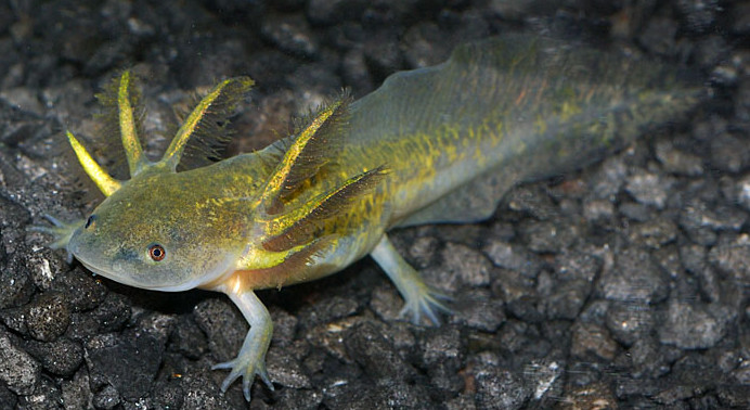 The axolotl (“water monster”), also known as a Mexican salamander or a Mexican walking fish, is a neotenic salamander, closely related to the tiger salamander. Although the axolotl is colloquially known as a “walking fish”, it is not a fish, but an amphibian. The species originates from numerous lakes, such as Lake Xochimilco underlying Mexico City. Axolotls are unusual among amphibians in that they reach adulthood without undergoing metamorphosis. Instead of developing lungs and taking to land, the adults remain aquatic and gilled. Axolotls should not be confused with waterdogs, the larval stage of the closely related tiger salamanders , which are widespread in much of North America and occasionally become neotenic. Neither should they be confused with mudpuppies , fully aquatic salamanders which are not closely related to the axolotl but bear a superficial resemblance.