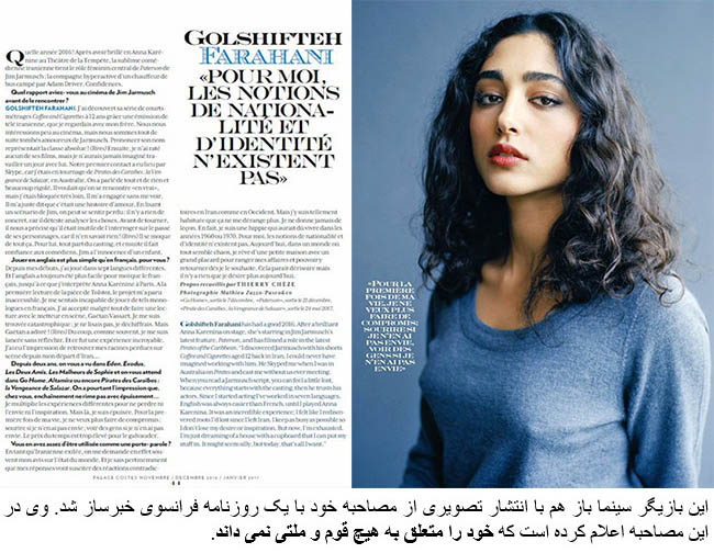 CINEMA. A l’occasion de la sortie des films Go Home (le 7 décembre) et Paterson (le 21 décembre), retrouvez l’interview de Golshifteh Farahani dans le dernier numéro de Palace Costes.