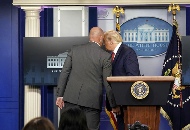 Trump returned to the media room minutes later and said a person had been shot by law enforcement and taken to hospital. He said he understood the suspect had been armed. “It was a shooting outside of the White House,” Trump said.
