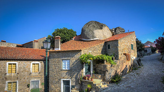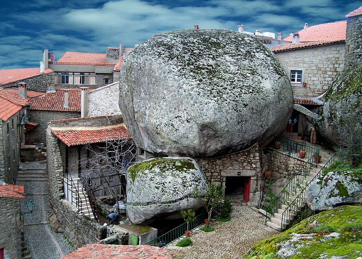 Monsanto was voted in 1938 the “most Portuguese village in Portugal” nestles on the slope of a steep hill (the Monsanto head, known in Latin as Mons Sanctus) , which rises abruptly above the prairy and reaches a height of 758 meters 2486 feet).)The most typical aspect of Monsanto is the fact that the village developed around impressively big and miraculously balanced granitic boulders.
