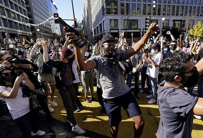 After days of waiting for results, on Saturday, people gathered at Black Lives Matter Plaza in Washington, DC, to celebrate President-elect Joe Biden’s win.