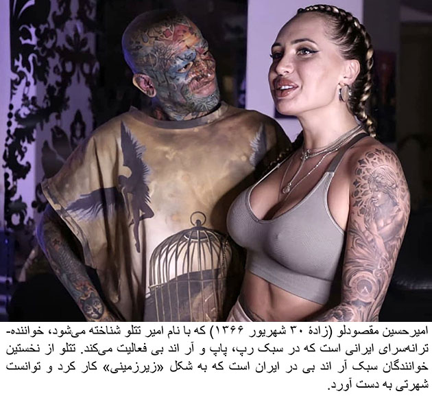 Amirhossein Maghsoudloo better known by his stage name Amir Tataloo, is a singer-songwriter. Tataloo is one of the first generation of Underground Hip hop scene.