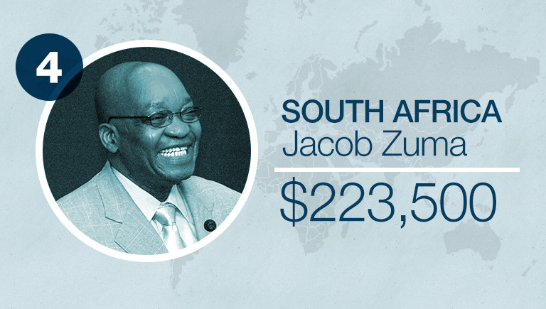 Here is how much 12 leading President and Prime Ministers get as their annual salaries. Not monthly o, annual! President Obama leads the pack with $400,000. South African President Jacob Zuma is the only African President in the list with an annual salary of $223, 500.