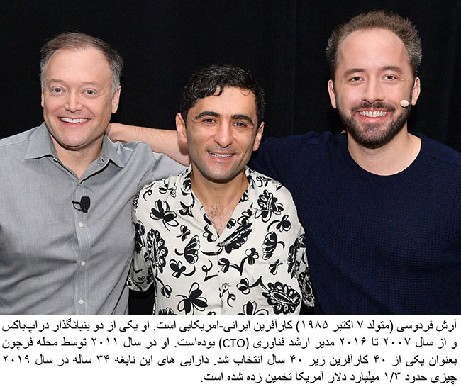 Arash Ferdowsi (born October 7, 1985) is a billionaire entrepreneur. He is the co-founder of Dropbox. Arash Ferdowsi net worth: Arash Ferdowsi is an American businessman and entrepreneur who has a net worth of $1.3 billion. Arash Ferdowsi was born in Overland Park, Kansas in October 1985. He is best known for being the co-founder and chief technology officer of Dropbox. Ferdowsi dropped out of Massachusetts Institute of Technology to focus on his business.