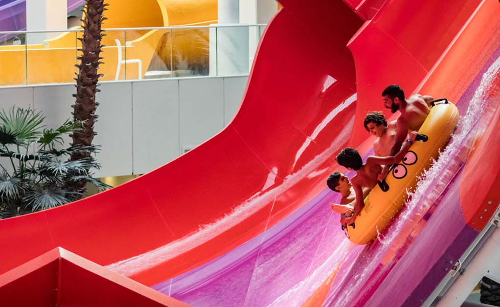 [custom_adv] A water park or waterpark is an amusement park that features water play areas, such as swimming pools, water slides, splash pads, spraygrounds (water playgrounds), lazy rivers, or other recreational bathing, swimming, and barefooting environments.