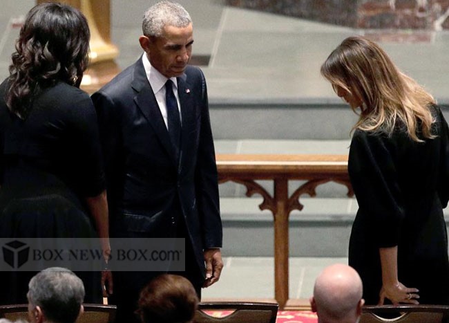 [custom_adv] Former first lady Barbara Bush was remembered by friends and family at her funeral on Saturday, April 21. The 1,500 invited guests gathered for the service at the St. Martin’s Episcopal Church in Houston, Texas, to pay tribute to the wife of former president George H. W. Bush, who died at the age of 92 on Tuesday, April 17, following a series of recent hospitalizations. Following the service, the grandmother and great-grandmother was set to be buried at the Bush Library at Texas A&M University, northwest of Houston. [custom_adv] Thousands of people paid their respects to the former first lady at a viewing that was open to the public on Friday, April 20, ahead of the funeral, which was by invite only. [custom_adv] President Donald Trump was not in attendance. The White House released a statement on Friday, April 20, saying the former reality star would not be present at the service for security reasons but his wife would be there to pay her respects. [custom_adv] "First Lady Melania Trump will attend the memorial service for Barbara Bush this Saturday on behalf of the First Family,” the statement read. “To avoid disruptions due to added security, and out of respect for the Bush Family and friends attending the service, President Trump will not attend.” [custom_adv] Nostalgic, because of my many ties to the White House and the Republican Party that the family of President George H.W. Bush represents. [custom_adv] I served as an intern in the White House Press Office, and my politically moderate parents were avid Republican Party activists, fund raisers and convention delegates. [custom_adv] [custom_adv] Of course, this was when the GOP welcomed a cross section of views and backgrounds, and when it was common for the Republicans and Democrats to work together on the key matters of the day. [custom_adv] Added to that is my interest in presidential history. I love to see the gatherings that bring together former presidents and First Ladies, from library and museum openings to conferences, to sadly, funerals. [custom_adv] I figured there would be ample opportunity at Mrs. Bush’s funeral for views of the former occupants of the White House to be photographed together. [custom_adv] And, the photo that appears to be front and center is one taken by Paul Morse, who was a White House photographer during the George W. Bush administration. (He now specializes in weddings.) [custom_adv] The photo, taken behind the scenes in what seems to be an events room, shows four former presidents — both Presidents Bush, Bill Clinton, and Barack Obama. They are accompanied by Laura Bush, Hillary Clinton, Michelle Obama, and Melania Trump, who attended the funeral without her husband, President Donald Trump.