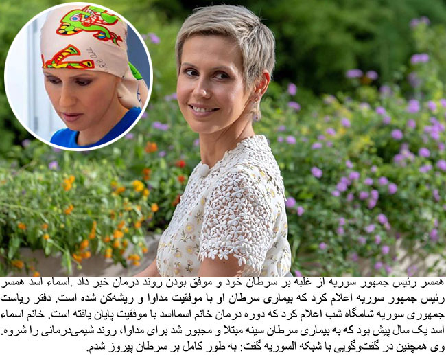 The wife of Syrian President Bashar al-Assad said in an interview aired late on Saturday that she was “totally” free of breast cancer after a year of treatment.