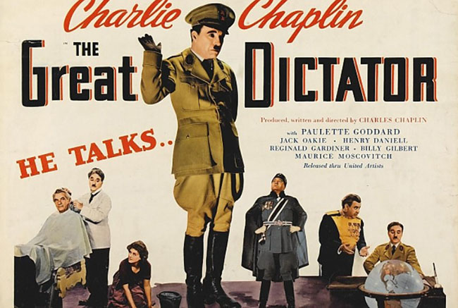 The Great Dictator is a 1940 American political satire comedy-drama film written, directed, produced, scored by and starring Charlie Chaplin, following the tradition of many of his other films. Having been the only Hollywood film-maker to continue to make silent films well into the period of sound films, this was Chaplin’s first true sound film.Chaplin’s film advanced a stirring, controversial condemnation of Adolf Hitler, Benito Mussolini, fascism, antisemitism, and the Nazis. At the time of its first release, the United States was still formally at peace with Nazi Germany. Chaplin plays both leading roles: a ruthless fascist dictator, and a persecuted Jewish barber.