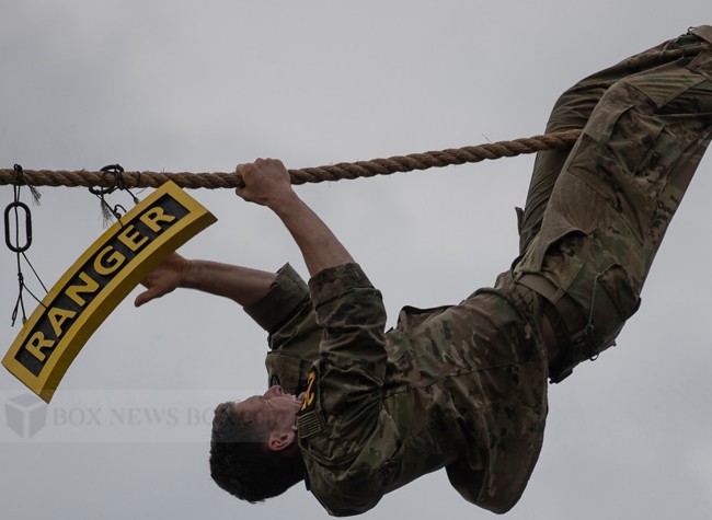 [custom_adv] The final standings will be announced during an awards ceremony scheduled for April 15 at the Maneuver Center of Excellence headquarters. Leading into the final event, the top five teams were as . [custom_adv] Following the night orienteering event that took the 28 teams from the second to the third and final day of the competition, only the top 16 teams were allowed to continue. [custom_adv] The first event of the final day is the Darby Queen Obstacle Course at Camp Darby. The teams must individually move over, around and through 24 obstacles. [custom_adv] For one obstacle called the "skyscraper," the teams must get through it with their partners' assistance. [custom_adv] A helicopter ride and helocast into Victory Pond was scheduled for after the Camp Darby event, but inclement weather necessitated a bus ride to Victory Pond where the second to last event took place: the combat water survival assessment. [custom_adv] The CWSA is a relay event where one member of the team climbs 35 feet to a log walk above Victory Pond. The team member must climb partway down an angled rope to a wooden Ranger tab, tap the Ranger tab and drop into the water below. [custom_adv] Once they emerge from the water they can grab zip-lining gear and tag their team member to begin the log walk. The first team member continues on to a 75-foot tower, ascends the stairs and zip-lines back into the water of Victory Pond. [custom_adv] As the different Soldiers splashed down, the audience oohed in sympathy or aahed in appreciation, depending on whether the Soldier tumbled or thudded into the water or gracefully skidded along the pond's surface at the end of the zip-line. [custom_adv] Once the second Soldier of each team finished the zip-line, both team members ran for the CWSA finish line and were scored according to their time. [custom_adv] After the last of the teams finished the CWSA, the teams began the final buddy run, staggered according to their placement going into the final event. [custom_adv] Entering the last turn into the final stretch, the spectators at Camp Rogers leaned out into the roadway to capture photographs and video of the competitors finishing, cheering each team on as the 16 remaining teams completed the contest of strength, skill and endurance. [custom_adv] The Best Ranger Competition is the final of three multi-day competitions taking place during Infantry Week at Fort Benning. [custom_adv] The Best Mortar Competition concluded April 11, and the Lacerda Cup combatives tournament concluded April 12.