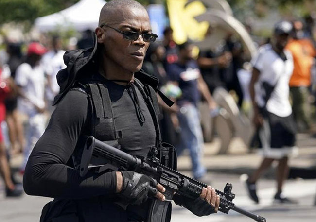 Footage by livestreamers showed that near the middle of a group of armed militia members wearing all black, a shot was fired. After a few moments of chaos the members fanned out and kneeled on the ground as police and medical personnel went in to treat the victims.