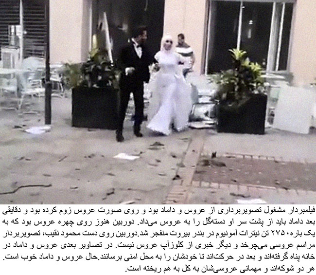 A Lebanese bride had to run for cover as she was posing for wedding photographs with her groom in central Beirut just moments before the massive explosion rocked the capital.