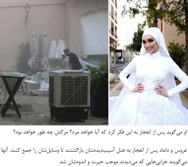 Footage captured by the couple’s wedding videographer, Mahmoud Nakib, shows the camera slightly shake as it pans down the train of Seblani’s dress before the explosion occurs.