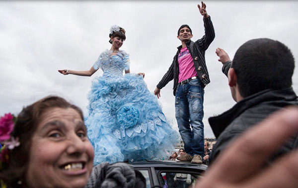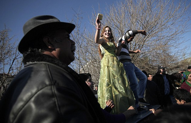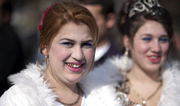 Scores of young Roma women were recently paraded before potential suitors at a Bulgarian ‘bride market’ where poor families are given the chance to arrange financially beneficial marriages for their children.Here the potential brides are provocatively dressed, donning gobs of mascara and wearing flashy jewellery, towering heels and mini-skirts. And surrounding them are young men whose family hope to find them a wife at a good cost.They are among the most poverty-stricken people in a deeply impoverished region and seek to forge mutually beneficial unions that will help them weather Bulgaria’s economic downturn.The ‘bride market’ — held four times a year on various religious holidays during the spring and summer — is a chance for the Roma’s nomadic tinkers to meet and not only catch up on gossip, but also play matchmaker for their adolescent sons and daughters. The cost of a bride — between 5,000 and 10,000 lev (£2,200 to £4,300) — has dropped in recent years as jobs have dried up. And wedding festivities are much more modest with cash so tight.