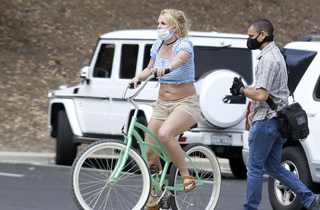 [custom_adv] Britney, 38, rocked a blue plaid crop top and short shorts as she happily sprinted through the park and rode her bicycle with her boyfriend at her side on Tuesday. [custom_adv] Despite calls for social distancing, the Princess of Pop - who also wore her signature choker - couldn't be more excited as she got to run through an open field for the first time in a long time. [custom_adv] However, she was still taking precautions as she wore a blue medical-grade mask but failed to cover her nose.Britney Spears has finally broken out of quarantine for the first time in three months to enjoy a fun-filled day out with longtime boyfriend Sam Asghari. [custom_adv] DailyMail.com spotted the Instagram-loving pair as they started the day with a lunch at Islands Restaurant near the pop star's home in Los Angeles' San Fernando Valley. [custom_adv] Britney and Sam were last publicly seen heading to Santa Barbara for a day out in early March, before the nationwide lockdowns began due to COVID-19. [custom_adv] The Hollywood couple had a fun-filled day as they grabbed lunch at Island Restaurant in Los Angeles, followed by a short shopping spree. [custom_adv] The mom of two even slipped on a pair of white gloves when she purchased her smoothie before heading off to a public park for a much-needed training session.
