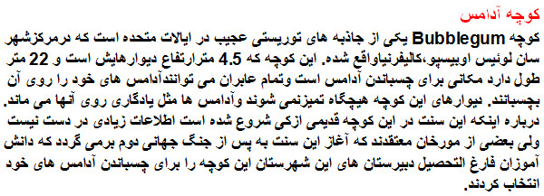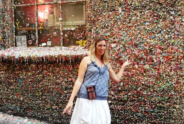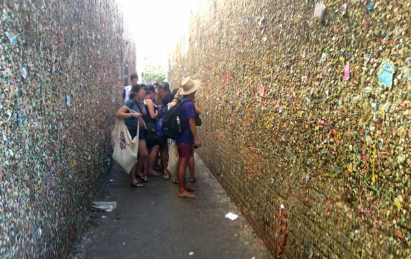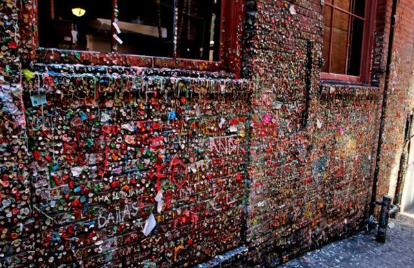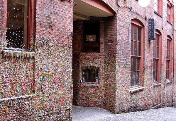 Bubblegum Alley is a tourist attraction in downtown San Luis Obispo, California, known for its accumulation of used bubble gum on the walls of an alley. It is a 15-foot (4.6 m) high and 70-foot (21 m) long alley lined with chewed gum left by passers-by. It covers a stretch of 20 meters in the 700 block of Higuera Street in downtown San Luis Obispo.According to the San Luis Obispo Chamber of Commerce and Downtown BUSINESS Improvement Association, the origin of the gum is “a little sketchy”. Some historians believe that the tradition of the alley STARTED after WWII as a San Luis Obispo High School graduating class event. Others believe it STARTED in the late 1950s, as rivalry between San Luis Obispo High School and California Polytechnic State University (Cal Poly) students. By the 1970s, Bubblegum Alley was well established.