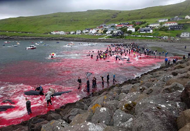Cambridge University student Alastair Ward, 22, was visiting the island last month to celebrate his graduation, when he stumbled across the busy bloodbath.