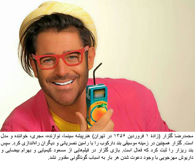 Mohammad Reza Golzar (born 31 March 1977) is an actor, singer, television host and model. Before starting his acting career with Sam and Narges, in 1998 he gained fame as the guitarist of the Iranian music band, Arian band. He is now a singer of the Rezzar Band led by Hamed Baradaran.