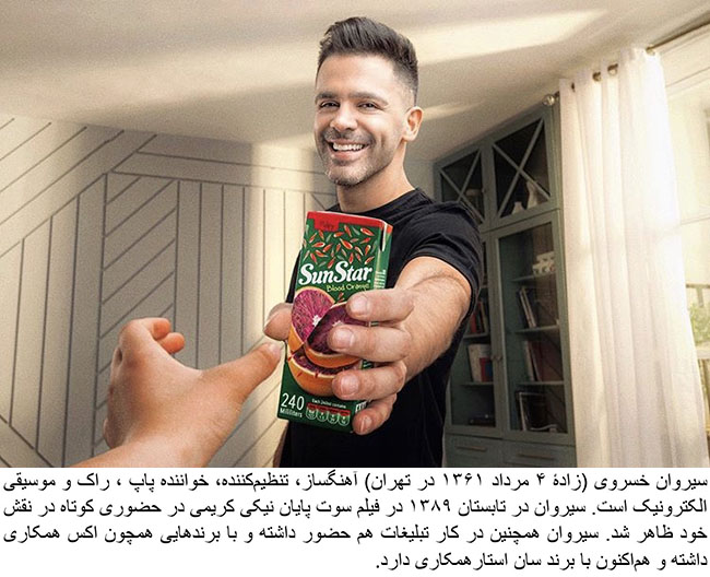 Sirvan Khosravi ( born 26 July 1982) is a pop rock singer, songwriter, music producer. He is the older brother of Xaniar Khosravi, also a pop singer. Before releasing his first album in 2001, Sirvan participated in the works of other Iranian artists as an Audio Engineer, Mixing and Mastering Engineer and Producer. After meeting Omid Athari Nejad in 2001, he produced his first album titled “To Khial Kardi Beri” and released it in 2005.