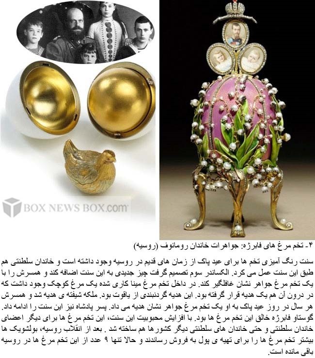 The tradition of painting eggs for Easter has existed in Russia since ancient times. Of course, the Royal Family follows this tradition, too. Alexander III decided to bring something new to this custom and came up with a very interesting surprise for his wife — a jewelry egg. There was a small chicken in this egg, covered in enamel, and inside the chicken, there was another gift — a ruby necklace and the crown. The Empress loved the present so much, her husband continued to give her a new egg every Easter. His son also continued the tradition. Gustav Fabergé was the artist who created all of the eggs. As the tradition became more popular these eggs were also created for other members of the royal family, even for those from other countries.