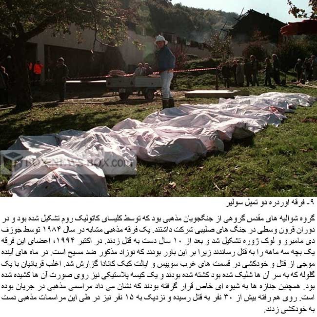 [custom_adv] The Manson Family was a commune established in California in the late 1960s, led by Charles Manson. They gained national notoriety after the murder of actress Sharon Tate and four others on August 9, 1969 by Tex Watson and three other members of the Family, acting under the instructions of Charles Manson. Group members were also responsible for a number of other murders and assaults. [custom_adv] The Peoples Temple of the Disciples of Christ, commonly shortened to Peoples Temple, was a new religious movement founded in 1955 by Jim Jones in Indianapolis, Indiana. Jones used the Peoples Temple to spread a message that combined elements of Christianity with communist and socialist ideas, as well as an emphasis on racial equality. [custom_adv] Heaven's Gate was an American UFO religious millenarian cult based in San Diego, California, founded in 1974 and led by Marshall Applewhite (1931–1997) and Bonnie Nettles (1927–1985). On March 26, 1997, police discovered the bodies of 39 members of the group, who had participated in a mass suicide in order to reach what they believed was an orgasm Comet Hale–Bopp.The group no longer exists, as its website states that: "Hale-Bopp brings closure to Heaven's Gate ... Our 22 years of classroom here on planet Earth is finally coming to conclusion -- "graduation" from the Human Evolutionary Level. We are happily prepared to leave "this world" and go with Ti's crew." [custom_adv] The Aetherius Society is a new religious movement founded by George King in the mid-1950s as the result of what King claimed were contacts with extraterrestrial intelligences, whom he referred to as “Cosmic Masters”.The main goal of the believer is to contact these Cosmic Masters, who may help humanity solve its current Earthly problems and later allow them a place in the world to come. [custom_adv] Aum Shinrikyo is a Japanese doomsday cult founded by Shoko Asahara in 1984. It carried out the deadly Tokyo subway sarin attack in 1995 and was found to have been responsible for another smaller sarin attack the previous year. The group never confessed. Those who carried out attacks did so secretly, without being known to ordinary believers. Asahara broadcast his singing, insisting on his innocence through a radio broadcast on a signal they purchased in Russia and directed toward Japan. [custom_adv] The group, four of whom were minors at the time, killed the four teenagers in June 2008, prosecutors said. They then desecrated the bodies and stole their possessions. The dismembered bodies of the teenagers were found buried in the forest in August that year. [custom_adv] The Order of the Solar Temple, also known as Ordre du Temple Solaire (OTS) in French and the International Chivalric Organization of the Solar Tradition or simply as The Solar Temple, is a secret society and cult that claims to be based upon the ideals of the Knights Templar. OTS was started by Joseph Di Mambro and Luc Jouret in 1984 in Geneva as l'Ordre International Chevaleresque de Tradition Solaire (OICTS) and later renamed Ordre du Temple Solaire. [custom_adv] The six were found guilty of "murdering four people with the aim of carrying out an initiation ritual into a sect and of desecrating the bodies of the dead," a court in the city of Yaroslavl, north-east of Moscow, said in a statement. [custom_adv] [custom_adv] Around 1964, Raynor Johnson was hosting regular meetings of a religious and philosophical discussion group led by Anne Hamilton-Byrne at Santiniketan, his home at Ferny Creek in the Dandenong Ranges on the eastern outskirts of Melbourne. Also connected was a series of weekly talks he gave at the Council of Adult Education in Melbourne, entitled "The Macrocosm and the Microcosm". The group purchased an adjoining property which they named Santiniketan Park in 1968 and constructed a meeting hall, Santiniketan Lodge.