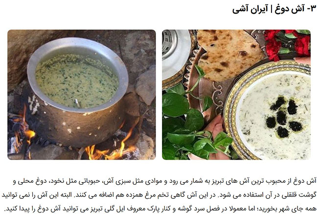 Yogurt soup is one of the most delicious soups of Tabriz which is made using onion, legume, rice, special soup vegetables, meat soup, potato, yogurt, pea, haricot, kale and carrot.