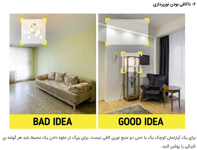 Something else to remember is that the light should be placed with the consideration of your needs. If you are going to sew in the right corner, paint in the left one, and read in the middle, you need at least 3 light sources. It’s better to plan these things when you are doing the renovation because it’s not a good idea to place floor lamps in small apartments: they take up too much valuable space.