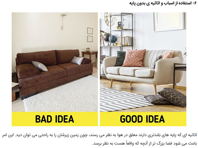 Furniture on taller legs looks as if it’s floating because you can clearly see the floor underneath it. It gives the impression that the room is bigger than it actually is.