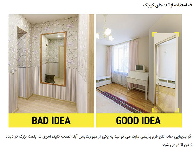 If your hall is narrow, you can hang a mirror on one of the walls which will make the room look much bigger. When choosing a mirror for the living room, remember a simple rule: hang the mirror in front of the window. It will reflect more light.