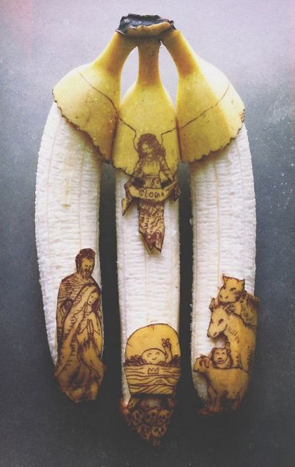 Dutch artist Stephan Brusche is an expert when it comes to transforming humble bananas into stunning artworks. The 37-year-old graphic designer carves the skin and flesh of the fruit to transform it into a variety of characters and animals – right from Marilyn Monroe and Homer Simpson to cute animals like giraffes, elephants or fish, and even biblical scenes. Stephan says he began working with bananas on a whim. “It all started a few years back when I just started using Instagram.