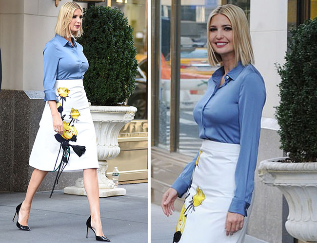 The 37-year-old, who is also set to attend the UNGA along with her father, President Donald Trump, wore a $2,130 funky floral skirt from Prada, featuring 3-D flower embellishments, including several stem-style tassels that fell below the hem of the white design.