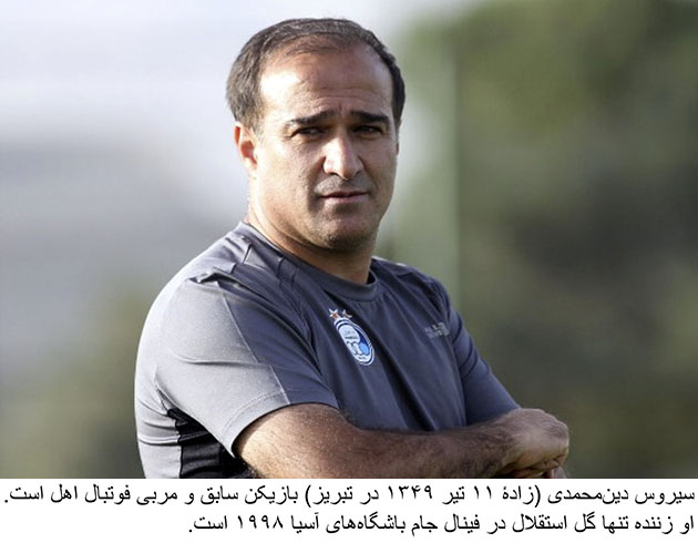 Sirous Dinmohammadi ( born 2 July 1970 in Tabriz) is a retired football player. He is most notably for playing for Tractor and Esteghlal.