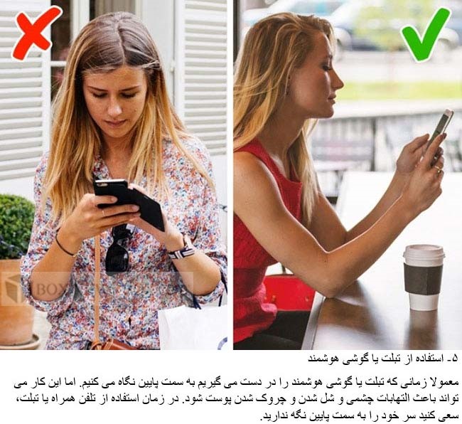 We usually hold a tablet or a smartphone with our head looking down, and this can cause eye edemas and a “turtleneck”: flabby skin and wrinkles. Try not to keep your head down all the time when you are having a chat or scrolling the newsfeed on your phone/tablet.