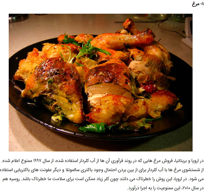 In Europe and Great Britain, selling chicken treated with chlorine has been banned since 1997. Chlorine washing is used to exclude the possibility of salmonella and other bacterial infections. In Europe, this method is considered to be dangerous because a high chlorine content may be harmful to our health. In 2010, the same prohibition was implemented in Russia.