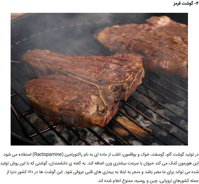 The meat of cattle, pigs, and turkeys is often produced with ractopamine. This hormone allows an animal to gain weight faster. Scientists believe that this meat can be harmful for people and lead to cardiovascular diseases. Meat prepared with ractopamine is banned in 160 countries, including European countries, China, and Russia.
