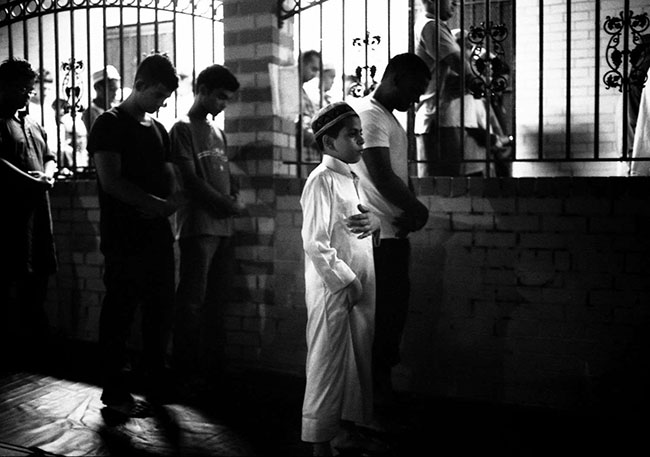 “Boy Praying During Ramadan on the Street Outside the Mosque,” in the Bronx in 2012.