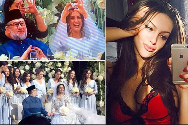Photos circulating on social media show the Sultan wearing a traditional Malaysian national tunic while the bride wore an elaborate white gown decorated with crystals.