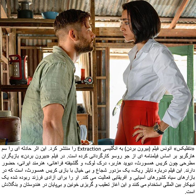 Extraction is an upcoming American action thriller film directed by Sam Hargrave and screenplay by Joe Russo, based on the comic Cuidad by Ande Parks, Joe Russo, Anthony Russo, Fernando Leon Gonzalez, and Eric Skillman. It stars Chris Hemsworth, Rudhraksh Jaiswal, David Harbour, Pankaj Tripathi, Manoj Bajpayee, Randeep Hooda, Golshifteh Farahani, Marc Donato, Fay Masterson and Derek Luke.