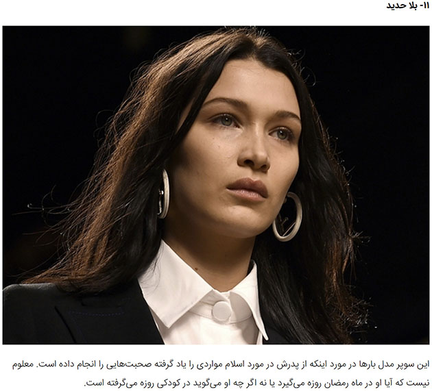 Supermodel Bella Hadid has spoken about learning about Islam from her father, Mohamed Hadid. It is not known if she fasts during Ramadan, though she has revealed she did observe the holy month as a child. “That was the best day of my life, when I went and saw the in Abu Dhabi,” she told Harper’s Bazaar in November. Adding of her father: “He would teach us about it and we would go and do Eid with my family and we would do Ramadan – I did that since I was a kid. Once I got older, I was working and going to school so I couldn’t fast for as long. My dad, he’s so passionate about it, and that’s what kept me very passionate and excited about my roots.”