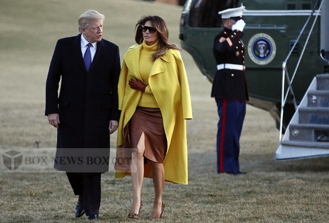 In a video shared by NBC News, where the two walk towards the aircraft, Melania Trump is seen wearing a long yellow overcoat draped over her shoulders. Her arms are inside the coat and not inside the sleeves.